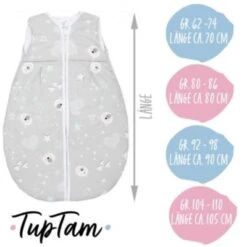 Er bietet durch seine Birnenform ein Höchstmaß an Strampelfreiheit und sorgt für kuschelige Schlafmomente im tollen Lieblingsdessin. Dank der Verarbeitung reiner Baumwolle ist der Schlafsack sehr angenehm und hautfreundlich für die Kleinsten. Der mittige Reißverschluss ist mit einem Klemmschutz am Kinn ausgestattet und die Armausschnitte sorgen für viel Bewegungsfreiheit.