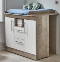 LOMADO® Babymöbel Komplettset LUND-78 In Pinie Weiß Nb./Trüffel Eiche Nb., Landhaus Design