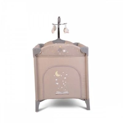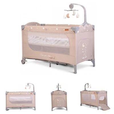 • Reisebett in beige mit zwei Ebenen, für Kinder ab Geburt geeignet, Mobile mit 4 Spielzeugen
