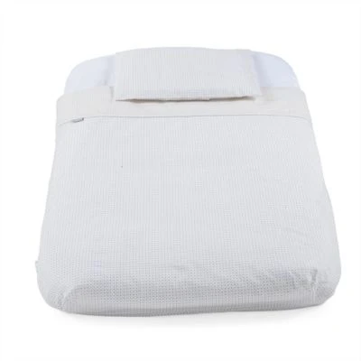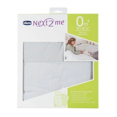Das CHICCO Vierer-Set besteht aus einem Spannbettlaken, einer Bettdecke mit Bezug und einem Kopfkissenbezug. Passend für die Beistellbettchen CHICCO Next2me.