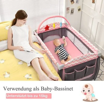 • Mehrzweck-Design umfasst Baby-Laufstall, Wickeltisch und Stubenwagen