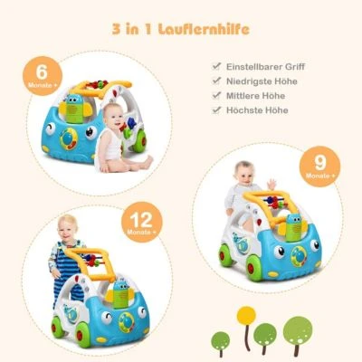 Unsere Lauflernhilfe sorgt für einen effizienteren Lernprozess auf dem Weg zu den ersten Schritten Ihres Kindes. Er animiert Ihr Baby dabei nicht nur durch sein farbenfrohes Design und seine zahlreichen Sound- und Lichteffekte zum Gehen, sondern bereitet ihm dabei auch noch jede Menge Spaß. Die stabile Konstruktion verhindert hierbei ein mögliches Umkippen, die Verzögerungskontrolle bremst den Wagen automatisch bei einer zu hohen Geschwindigkeit ab, um Ihr Kind zusätzlich vor Verletzungen durch Unfälle zu schützen. Er verfügt dabei über einen festen Stand, damit sich Ihr Kind problemlos am Wagen hochziehen kann.