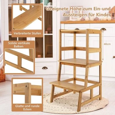 Für seine Herstellung wurde umweltfreundlicher und langlebiger Bambus genutzt. Durch seine Höhe von 40 cm können Kinder leicht hinauf- und hinabsteigen,außerdem sind seine Stufen breit und trittsicher. Die Träger am unteren Ende erhöhen die Stabilität und Standfestigkeit des gesamten Hockers. Für die Reinigung müssen Sie ihn nur ab und an mit einem feuchten Tuch abwischen.