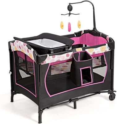 Bieten Sie Ihrem Baby mit diesem tragbaren Babyspielzeug ein Maximum an Komfort und Sicherheit. Dieses tragbare Babybett ist ein Muss für frischgebackene Eltern. Um einen bequemen und sicheren Bereich für das Baby zu schaffen, verfügt der tragbare Babyspielplatz über einen Wickeltisch, einen Stubenwagen und ein Aktivitätszentrum. Er dient dazu, das Baby während seines Wachstums zu begleiten und bietet nicht nur eine reibungslose Bewegung, sondern verfügt auch über 2 Räder mit Bremsen für mehr Stabilität. Speziell für Babys entwickelt, sorgen 3 niedliche Spielzeuge und eine Spieluhr für mehr Spaß und lassen es friedlich einschlafen. Nehmen Sie das Set mit nach Hause und lassen Sie es Ihr Baby bis zum Kleinkindalter begleiten.