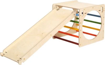 Dieser tolle Kletterwürfel aus dem Hause KateHaa begeistert mit seinem Design in schönen Farben und verwandelt das Kinderzimmer im Nu in ein Kletterparadies! Der Würfel kommt mit einer Kletterwand und bietet Kindern abwechslungsreiche Spielmöglichkeiten. Dabei trainieren kleine Entdecker*innen spielerisch ihr Gleichgewicht, ihre Kraft und ihre Koordination. So können sich Kinder ganz wie auf dem Spielplatz austoben und haben großen Spaß dabei!