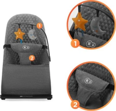 Mit dieser minimalistisch, im skandinavischen Design, gestalteten Babyliege MIMI von Kinderkraft kommt ein perfekter Alltagsbegleiter in die Familie. Dank der 3-stufig verstellbaren Rückenlehne kann die Babyliege perfekt an die Bedürfnisse des kleinen Nachwuchses angepasst werden und die Form mit dem angenehmen Stoffbezug sorgt für eine entspannte Haltung bei gleichmäßiger Gewichtsverteilung. Durch die eigenen Körperbewegungen können sich die Kleinsten auch von allein schaukeln. Der individuell und stufenlos anpassbare 3-Punkt-Gurt und die ausgesprochen breite und stabile Basis mit rutschhemmenden Elementen sorgen dabei für die nötige Standfestigkeit und Sicherheit. Ob zum entspannten Ausruhen, zum fröhlichen Schaukeln oder zum Spielen: Die Babyliege ist ein Multitalent. Beim Schaukeln werden die motorischen Fähigkeiten trainiert und die beiden hängenden Spielelemente laden zum Greifen und Entdecken ein. Für die Eltern ist die Babyliege ein praktischer Helfer im Alltag und ermöglicht kleine Auszeiten mit Sicherheit. Die Babyliege ist für Ruhemomente eine reizarme Umgebung, die sich in jedes Wohnumfeld integriert und den Kleinsten friedliche Momente bieten kann. Dank der leichten Konstruktion und des Klappmechanismus ist die Babyliege auch für unterwegs bestens geeignet.