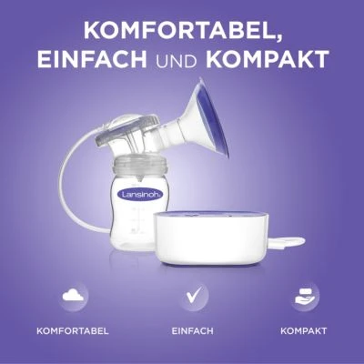 Die elektrische Milchpumpe Kompakt von Lansinoh, ist eine für überall. Mit ihr wird das Abpumpen von Muttermilch noch einfacher und komfortabler. Die Milchpumpe Kompakt ist unglaublich leicht und gerade mal so groß wie ein Apfel. Sie lässt sich im Handumdrehen zusammenstecken und kinderleicht bedienen. Die Einstellungen sind dank der LED-Leuchtdioden auch nachts gut erkennbar.