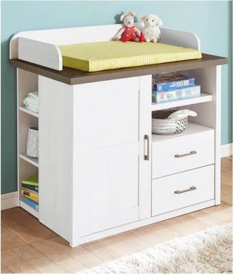 1x Wickelkommode mit 1 Tür, vorne 1 Holzboden, seitlich hinten 2 Holzböden, 2 Schubkästen, B/H/T: ca. 106/102/75 cm
