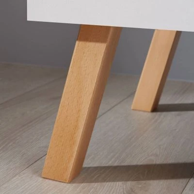 • Babymöbel Set 2-tlg. mit abnehmbarem Wickelaufsatz in Weiß mit Absetzungen in Buche massiv, Korpus / Front: Qualitätsspanplatte mit Melaminharzbeschichtung, Dekor / Farbe: weiß
