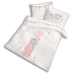 MTOnlinehandel Kinder-Bettwäsche Mädchen Hase Little One, Biber, Rosa 100 X 135 Cm + 40 X 60 Cm