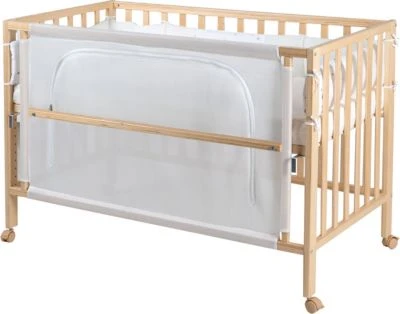 – kann als Beistellbett ans Elternbett eingehängt werden