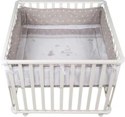 Dieses quadratische Laufgitter INDIEBÄR aus dem Hause ROBA bietet Ihrem Schatz ein sicheres Spielfeld. Das Laufgitter kommt komplett ausgestattet mit einer waschbaren und weich gepolsterten Einlage und einem Bremsrollensatz. Der Boden kann in der Höhe 3-fach verstellt werden. Zunächst ist der Boden hoch eingestellt Ihr Winzling fühlt sich sicher und geborgen in seinem Reich und Ihr Rücken wird beim Herausheben geschont. Später kann der Boden nach und nach abgesenkt werden: Jetzt helfen die Sprossen bei den ersten Steh- und Gehversuchen.