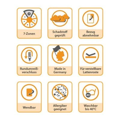 Die 7-Zonen Matratze „Jupiter“ besitzt einen komfortablen Komfortschaum-Kern mit einem speziellen 2D CNC Konturschnitt. Beide Liegeseiten besitzen die gleiche Stützkraft. Der Fresh Plus Doppeltuch-Bezug wurde beidseitig mit Klimafaser versteppt und besitzt einen umlaufenden Reißverschluss zum leichten waschen. Die Antipilling Ausrüstung sorgt dafür das auf der Oberfläche keine Knötchen entstehen. Die Matratze eignet sich ideal für die Verwendung mit Toppern. Spezieller 7-Zonen 2D CNC Konturschnitt 22,5 cm hoher formstabiler Komfortschaum-Kern RG 30 Beide Liegeseiten mit gleicher Stützkraft Gut geeignet für die zusätzliche Verwendung von Toppern Fresh Plus Doppeltuch-Bezug, beidseitig mit Klimafaser versteppt