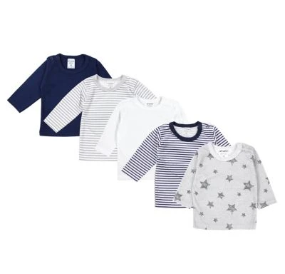 – Tolle Baby Langarm-Shirts für Jungen einfarbig und gestreift in einem preisgünstigen 5er Pack
