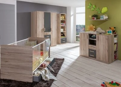 • Babyzimmer Cariba 8 teilig Eiche San Remo und Graphit für Jungen und Mädchen