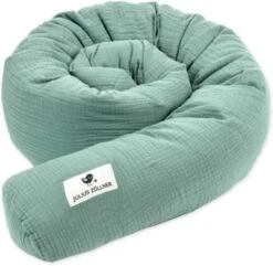 Die Zöllner Nestchenschlange mit Bezug aus Baumwoll-Musselin schützt Babys Köpfchen vor harten Gitterstäben, Zugluft und anderen Störfaktoren. Sie sorgt für Sicherheit und Gemütlichkeit in einem. Außerdem sieht sie hübsch aus.